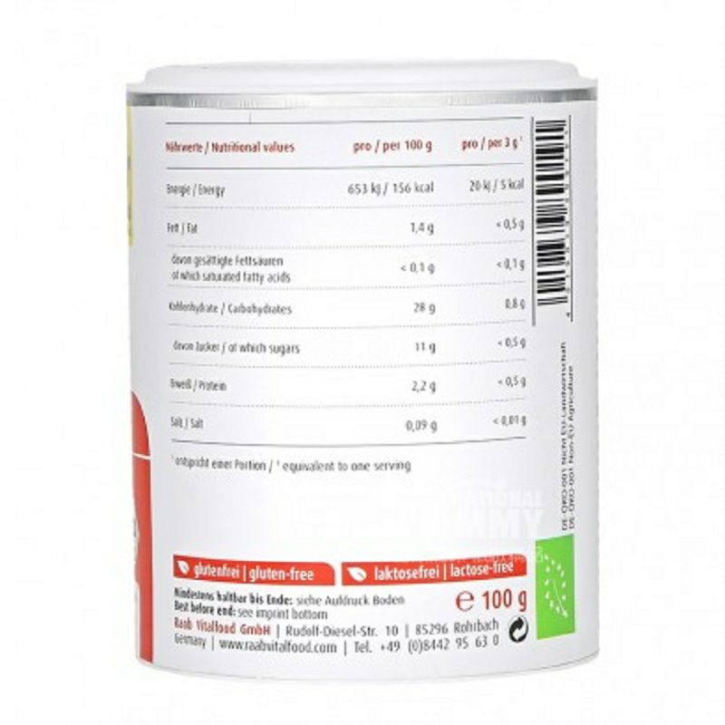 Parameters Applicable population: Adults Net content: 100g Ingredient: wolfberry powder Usage: 1 teaspoon (3G) per day, add to fruit juice, soybean milk, oat milk, yogurt, etc. mix well and drink, also can be used for baking cakes. matters needing attention: 1. Nutrition can not replace balanced diet and healthy lifestyle. 2. Keep away from direct sunlight during storage. 3. This product is not used for diagnosis, treatment or prevention of any disease. Place of sale: Germany Brand: Raab vitalfood |