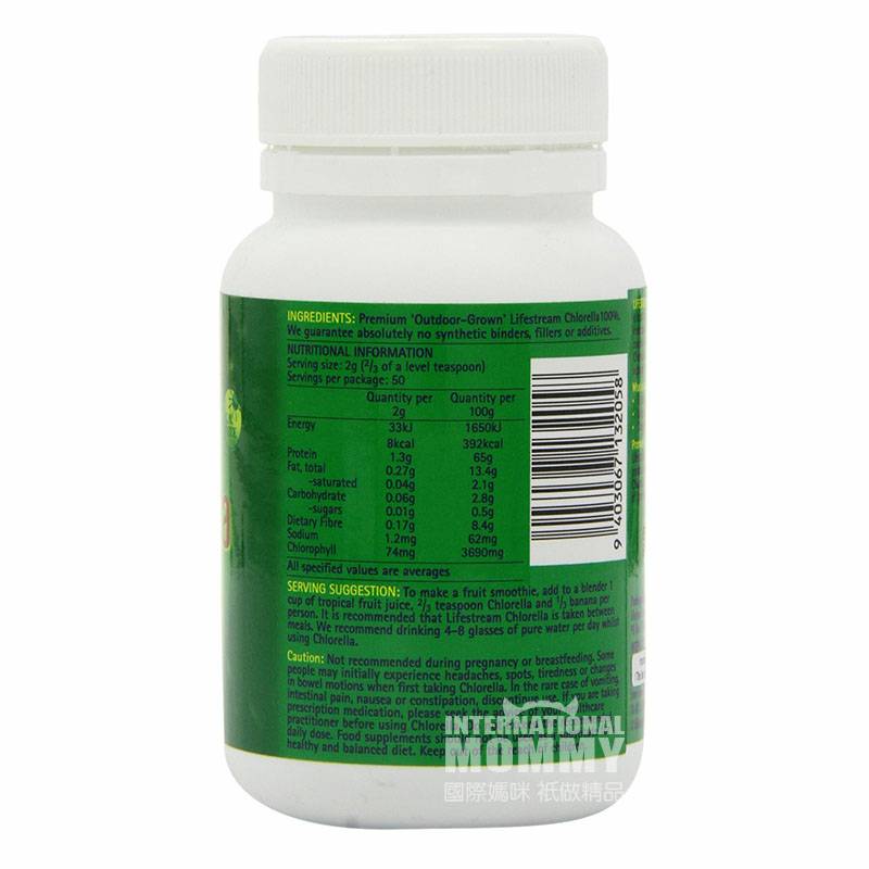 Parameters一般製品情報 製品紹介 緑藻は高タンパク質の食べ物で、食事の栄養不足を補う佳品です。緑藻にはビタミン、ミネラル、アミノ酸が多く含まれています。肝臓や腸などをきれいにするのに役立ちます。その行為は血液浄化剤のようなものであり、鉄元素の吸収を助ける。 規格100 g/ボトル 使用量は毎回食べる前に揺らしてから3グラムの緑藻粉を新鮮なジュースや野菜ジュースに入れて服用し、毎日1-2回服用する。12歳以下の児童の使用量は半減するか、医者の指示に従う。 成人に適用 保存は25℃を超えて保存しないでください、強い光の下でを日焼けしないでください 注意事項は子供が触れる場所から離れている。 原産国New Zealand/ニュージーランド 生産企業lifestream |