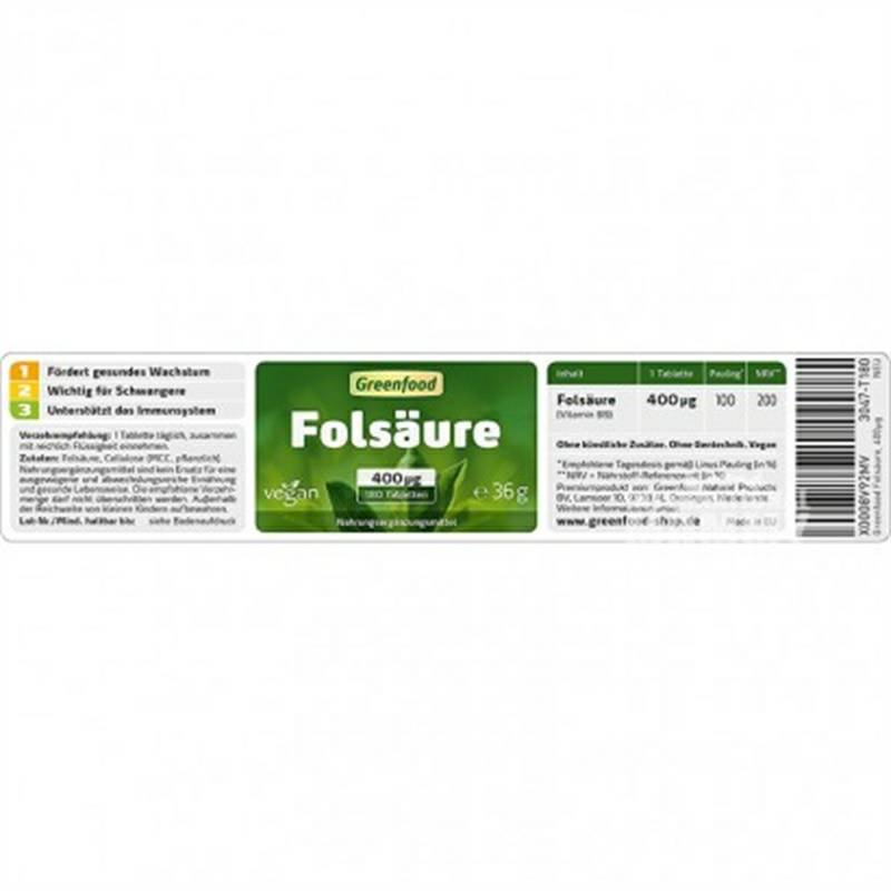 製品パラメータ 適用者:成人 成分:葉酸、メチルセルロース(HPMC、MCC)。 用法用量: 1日1錠 純含有量: 36 g 規格: 180枚 注意事項: 1、子供の手の届かないところに置かないでください 2、避光、乾燥所に保管し、25℃以下で保存してください。 3、もし処方薬を服用している場合、体に何か状況がある場合、または妊娠と授乳期にある場合は、本品を服用する前に医者に相談してください。 販売地:Holland ブランド:Greenfood |