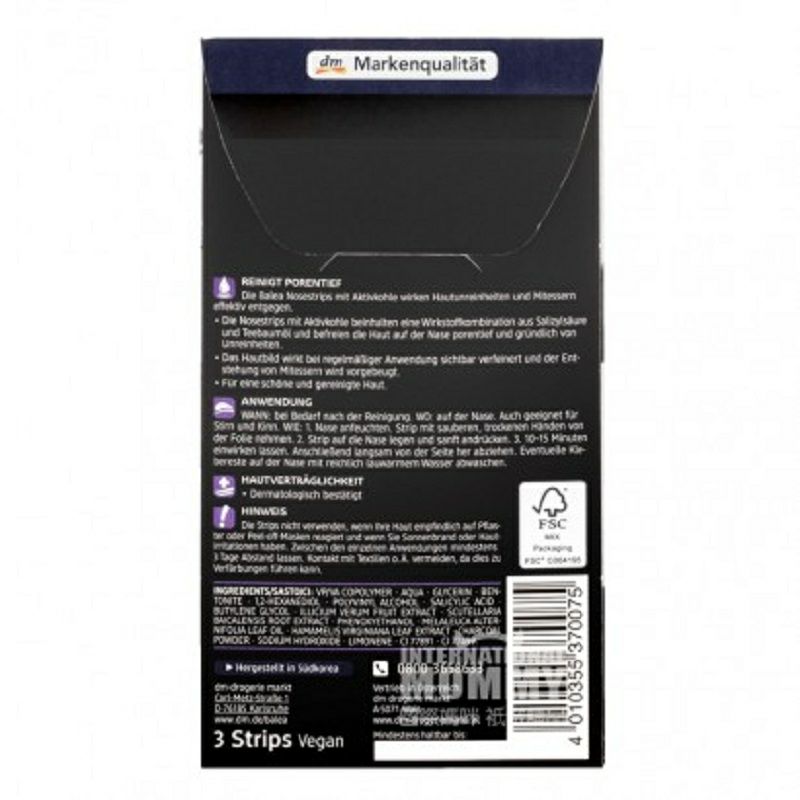 製品パラメータ 規格: 3枚 肌質:のどんな肌にも適用します。特に水不足型肌に適しています 使用方法: 1、鼻を局部洗浄し、必要に応じて洗浄力の強い石鹸を使用し、ぬるま湯で洗浄した後、鼻の水分を拭かないでください。 2、制品の包装袋を引き裂いて、鼻贴りを取り出して、透明なプラスチックフィルムを引き裂いて、プラスチックフィルムに密着した面を均一に鼻に贴って、それから軽く押して、鼻贴りを鼻に贴らせて、鼻贴り内にエアバッグが発生したら、エアバッグをゆっくりと押し出します。そして、鼻張りが乾くのを待って、鼻張りが乾燥して硬くなったときは、両手で、内鼻の中の方向から引き裂きます。鼻のシールにはジャングルのような黒い頭のニキビがいっぱい付いていて、冷たい水で鼻の残りをきれいに洗い、収縮機能のあるさっぱりした肌の水を塗っているのを見ることができます。この時、鏡を見ると、黒い頭に悩まされていないことがわかります。 注意事項: 1、子供が触れるところに置かないでください。 2、避光、乾燥所に保管してください。 3、製品が不注意で目に入ったら、すぐに大量の水できれいに洗ってください。 販売地:Germany ブランド:Balea |