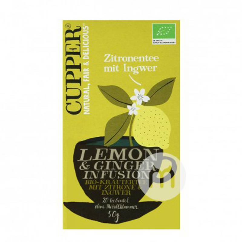 Parameters製品パラメータ 純含有量: 20 x 2.5g 成分:香茅、姜根(25%)、レモン皮(12%)、レモン馬鞭草、甘草、天然レモン香料(6%)、有機農業由来。 適用者:成人 食用法:茶袋を新鮮なお湯(100°C)に7-8分間浸漬する。 注意事項: 1、高血圧は過度の飲用を避けるべきである。 2、子供や妊婦にはお勧めしません。 貯蔵方法m−hは乾燥した環境に貯蔵し、光を避ける。 販売地:Germany ブランド:CUPPER |