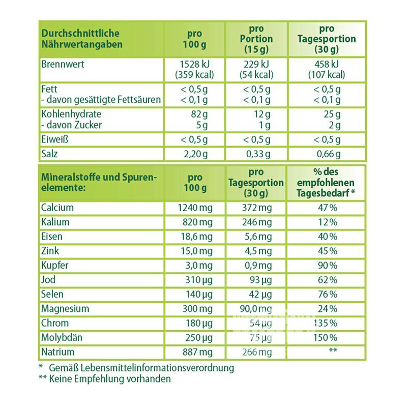 製品パラメータ 成分:マルトースデキストリン、クエン酸カルシウム、クエン酸ナトリウム、クエン酸カリウム、Magnesiumdicitrat、鉄(II)硫酸塩、放出剤(シリカ)、酸化亜鉛、銅(II)、硫酸クロム(III)、塩化モリブデン酸ナトリウム、ヨウ化カリウム、セレン酸ナトリウム。 ヒトに適した:成人 純含有量: 250 g 使用方法m−hは、毎日朝晩各1回、毎回約15 g、水で攪拌し、1−2分後に飲用する。 注意事項: 1.本品は推奨量を超えたり、同類の栄養補給剤と同時に食べたりしてはいけない。 2.子供が触れるところに置かないでください。 3.光を避け、乾燥し、25度以下の場所に保管してください。 4.本品は食事栄養補給剤である。本品は薬の代わりにならない。 販売地:Germany/ドイツ ブランド:altapharma |