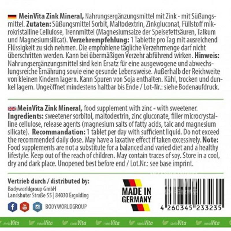 製品パラメータ 純含有量: 365粒/瓶 成分m−h甘味料ソルビトール、マルトースデキストリン、グルコース酸亜鉛、微結晶セルロース充填剤、離型剤(脂肪酸のマグネシウム塩、滑石、ケイ酸マグネシウム)。 適用者:成人 服用方法:は毎日1粒服用し、大量の水をに飲み込む。 お知らせ: 1、子供の手の届かないところに置かないでください。 2、避光、乾燥所に保管し、25℃以下で保存してください。 3、もし処方薬を服用している場合、体に何か状況がある場合、または妊娠と授乳期にある場合は、本品を服用する前に医者に相談してください。 販売地:Germany ブランド:MEIN Vita |