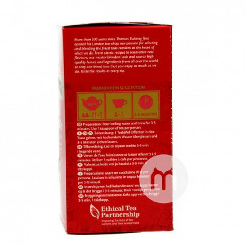 Parameters製品パラメータ 純含有量: 200 g 成分:紅茶 使用法:ティースプーン1杯をティーカップに入れ、沸騰水で3-5分浸して食べる。 保存方法:は日陰で常温密封保存すればよい。 販売地:England ブランド:TWINIGS |