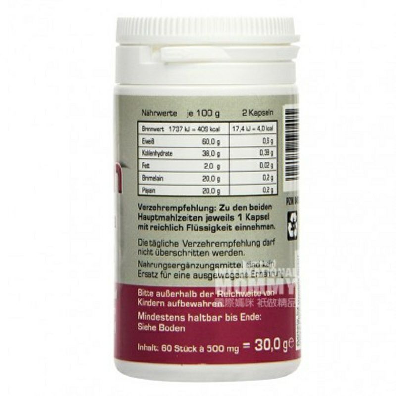 製品パラメータ 製品成分:パイナップル酵、キュウリ酵素 製品効果 1.総合消化酵素を補充する。 2.タンパク質の分解に寄与する; 3.消化管の炎症を予防し、胃腸の機能を改善する。 4.食品中の各種類の栄養素を小分子に分解し、体の吸収利用に役立つ。 規格:60粒/箱 適用者:大人に適しています。 用法用量:毎日1-2粒、食事または食後に食べることをお勧めします。空腹を避ける。 注意事項 1.本栄養品は薬品に取って代わることができない; 2.子供が触れるところに置かないでください。 3.避光、乾燥、摂氏25度以下に保管してください。 4.説明に従って服用してください。過剰に服用してはいけません。 5.サプリメントは、多様化とバランスのとれた食事と健康的な生活の代わりと見なすべきではないサプリメントを補充することを目的とする。 原産国:ドイツ 生産企業:avitale |