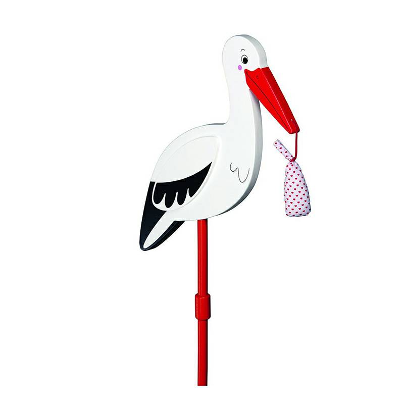 ハンドルとレバーがあり、ツルの口には布袋がくわえられています。