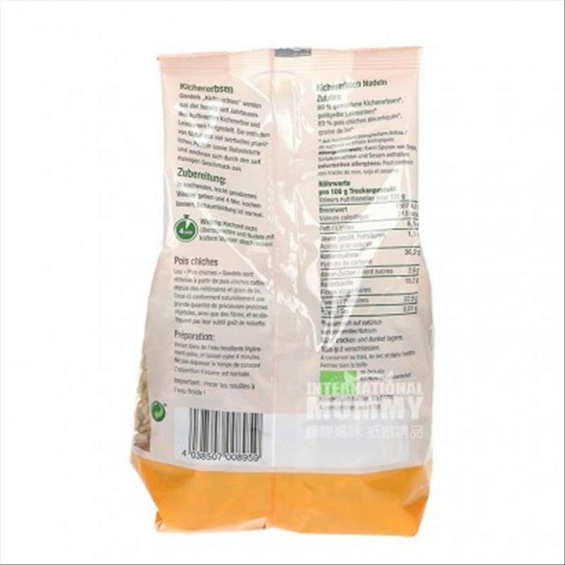 Parameters 產品參數 淨含量:250g 原料:80%磨碎的鷹嘴豆,金黃色亞麻籽,來自經認證的有機農業,可能含有大豆,堅果和芝麻的痕跡。 食用方法: 1、將意麵放入煮沸的水中,煮麵時間:4分鐘,按照個人口味可自己控制煮麵時間(具體根據個人喜好,喜歡軟的多煮一會,喜歡硬的時間煮短一點)。 2、煮的時候記得往水里放一小勺鹽,麵條味道會很好。 3、根據個人喜好搭配不同醬汁食用。 注意事項: 1、開封後,請盡快食用完,以防受潮影響口感。 2、若未食用完,請使用密封罐或密封夾存放,並放置於通風陰涼處。 銷售地:Germany 品牌:GOVINDA goodel |