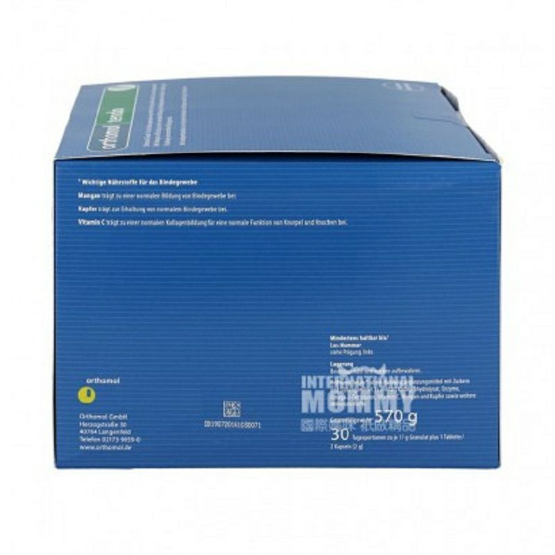 Parameters Applicable population: Adults Specification: powder + tablet + capsule, 30 packs / box Main ingredients: glucose; collagen hydrolysate (26.1%); maltodextrin; acidifier citric acid fish oil (5.9%); D-glucosamine sulfate (from crustaceans and shellfish); L-ascorbic acid; magnesium carbonate; chondroitin sulfate; gelatin; sucrose; stabilizer Arabic gum; stabilizer calcium phosphate; pineapple extract containing bromelain (0.7%); vitamin E; glycerol; Keywords fillers: microcrystalline cellulose; modified starch; vegetable oil; papaya extract containing papain (0.3%); flavor; citrus fruit extract and bioflavonoids; chicken extract containing hyaluronic acid; apple extract and bioflavonoids; zinc gluconate; sweetener Acesulfame; nicotinamide; calcium d-pantothenate; fillers: sodium carboxymethyl cellulose; emulsifier: soybean lecithin; Colorant titanium dioxide; pyridoxine hydrochloride, etc. How to use: one bag a day, with meals or after meals matters needing attention: 1. This product should not exceed the recommended amount or be taken with the same kind of nutritional supplements at the same time; 2. Do not put it in the place that children can touch; 3. Please store in a dark, dry place with temperature no higher than 25 ℃; 4. This product is a dietary supplement and can't replace medicine; 5. Please take it under the guidance of your doctor. Pregnant women and children are not allowed to take it. Place of sale: Germany Brand: orthomol |
