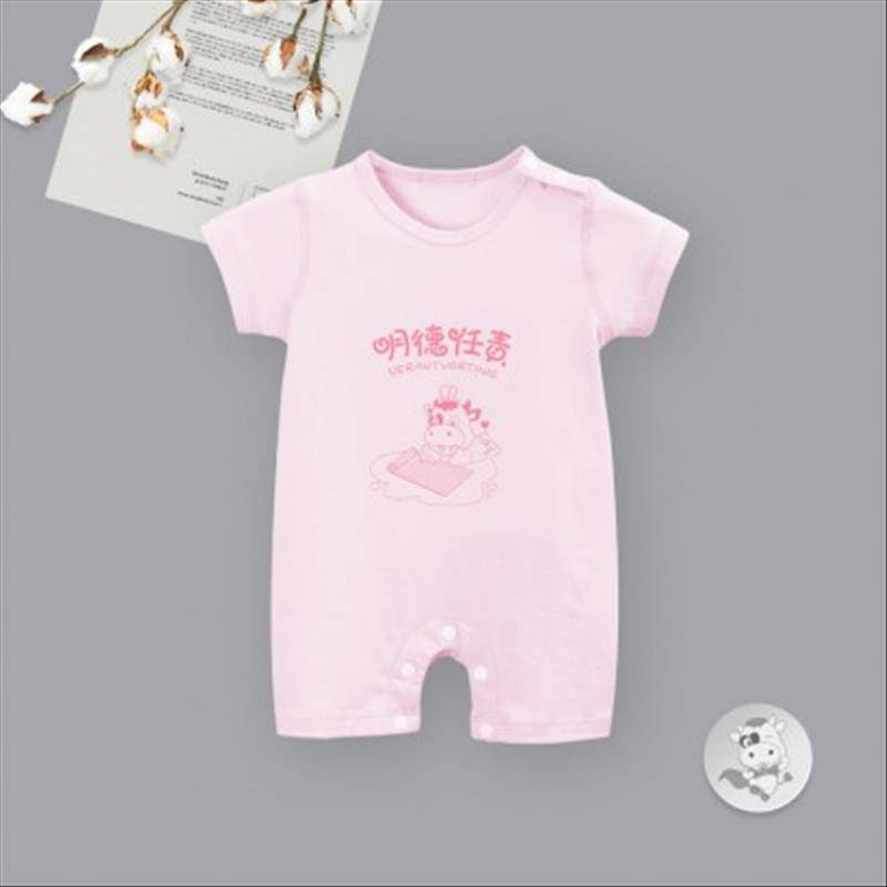 Verantwortung Baby boys and girls Chinese boutique culture cotton summer thin one-piece suit light pink
