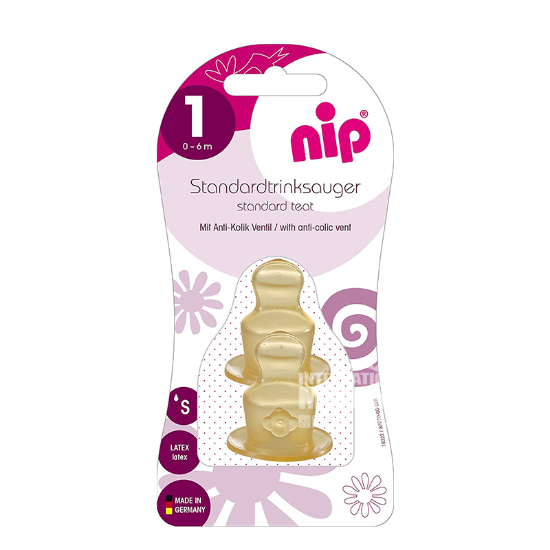Parameters Applicable population: 0-6 months old Material: latex Specification: 2 pieces of s size (suitable for drinking water and tea) matters needing attention: 1. Please check the product carefully before use. If it is damaged, please do not use it 2. Please pay more attention to the baby's safety when traveling 3. Clean in time after use Place of sale: Germany Brand: Nip |