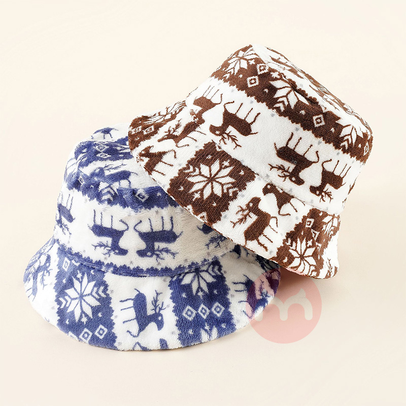 YIWU HAOHAO Fashion designer custom logo elk basin cap polyester Winter Christmas fisherman bucket cap