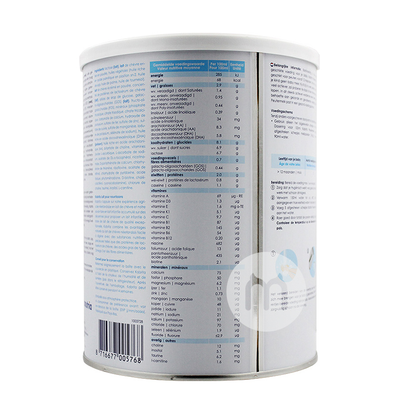 Bahan: laktosa (susu kambing), minyak sayur, susu bubuk kambing skim, gula, mineral, vitamin, DHA, AA