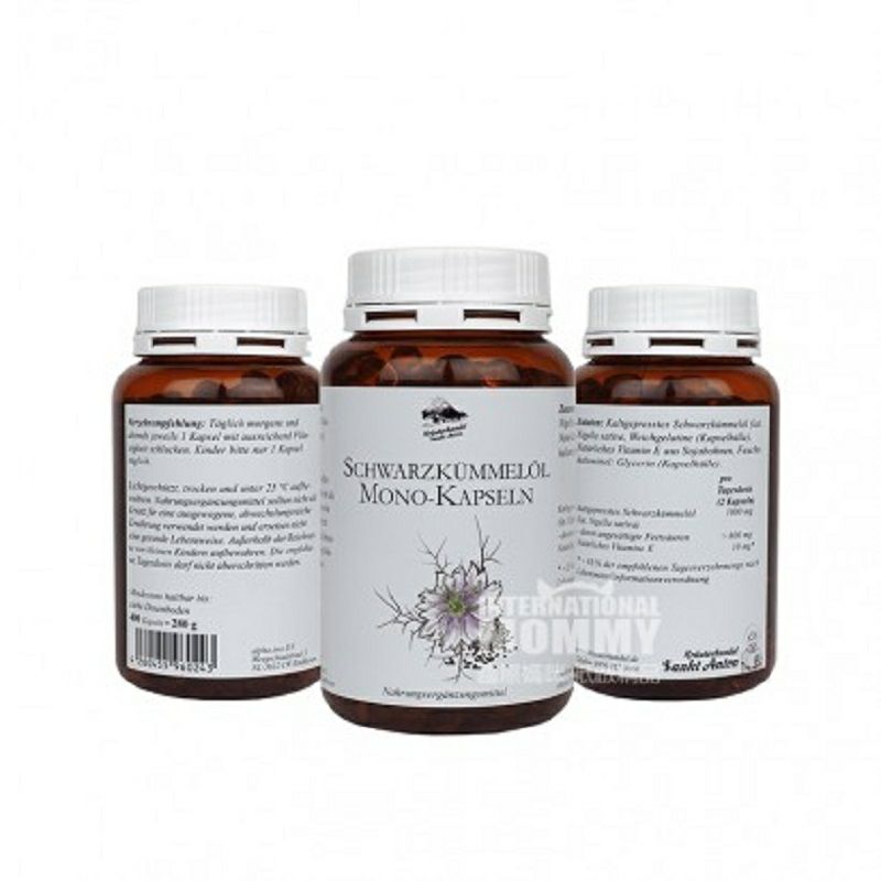 Parameter Parameter produk Orang yang berlaku: dewasa Spesifikasi: 400 kapsul / botol Bahan: Minyak jintan hitam dingin tekan (Fennel Flower Latitude, Soft Gelatin (Capsule), Vitamin E dari Kedelai, Wetting Agent. Glycerin (Jepang). Penggunaan: 2 kapsul per hari untuk orang dewasa, 1 kapsul untuk pagi dan sore, 1-2 gelas air (300-400ml) setiap kali. Dosis harian tidak boleh dilampaui. Hal-hal yang perlu diperhatikan: 1. Produk ini tidak dapat menggantikan diet seimbang dan gaya hidup sehat. Hindari sinar matahari langsung selama penyimpanan 2. Tidak direkomendasikan untuk anak-anak dan remaja. 3. Produk ini tidak digunakan untuk mendiagnosis penyakit atau mencegah penyakit apa pun. Tempat penjualan: Jerman Merek: Krauterhandel Sankt Anton |