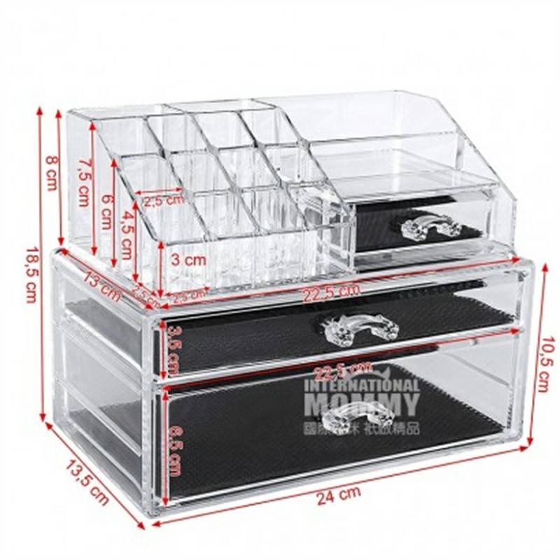 Fitur Produk 1. Terbuat dari akrilik. Kompresif, tahan aus, tahan air, dan tahan lembab - sehingga Anda dapat mengelola dan menggunakannya di kamar mandi basah, memberikan pesanan yang sempurna untuk benda-benda kecil di kamar mandi 2. Semuanya terlihat, terlihat chic dan elegan-transparan seperti kristal, sehingga Anda dapat dengan mudah melihat apa yang ada di dalamnya, menghemat waktu pencarian yang mengganggu. Laci yang sangat indah Gagang yang sangat jernih sangat indah dan transparan, dengan tekstur seperti kristal, mewah, dan indah3. Sangat praktis, penyimpanan ajaib - dapat menampung semua jenis, Anda dapat menggunakan lipstik, kuas makeup, maskara, pensil alis, eyeliner, dll. Sementara perhiasan Anda atau berbagai alat rias dengan berbagai ukuran dapat ditemukan di Tiga laci ditemukan dan dilindungi 4. Penghematan ruang, terdiri dari dua bagian - kotak rias kristal sederhana dan bergaya yang cantik dan praktis 5. Sudut membulat Tepi yang dipoles oleh beberapa proses khusus halus, transparan dan modis, aman dan menghindari goresan pada kulit