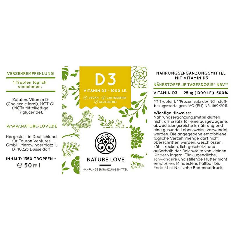 Fitur Produk 1. Dosis tinggi vitamin D3 1000 IU-25 mcg. Diperoleh dengan seksama, cairan vitamin D3 nabati, dibuat dari minyak kelapa dalam minyak MCT berkualitas tinggi. Tersedia 1.350 tetes 2. Tanpa bahan tambahan 100% bahan tanaman: tidak ada gelatin, garam magnesium dari asam lemak (magnesium), laktosa, gluten, zat penyedap, pengawet, zat pewarna dan zat penstabil, tanpa bahan yang dimodifikasi (GMO) 3. Dibuat di Jerman, memperoleh sertifikasi HACCP di bawah sistem audit yang ketat 4. Meningkatkan penyerapan kalsium dan fosfor tubuh, sehingga tingkat kalsium plasma dan fosfor plasma mencapai kejenuhan 5. Membantu pertumbuhan dan kalsifikasi tulang, membantu gigi sehat 6. Meningkatkan penyerapan fosfor melalui dinding usus, dan meningkatkan reabsorpsi fosfor melalui tubulus ginjal 7. Pertahankan tingkat sitrat yang normal dalam darah 8. Cegah hilangnya asam amino melalui ginjal
