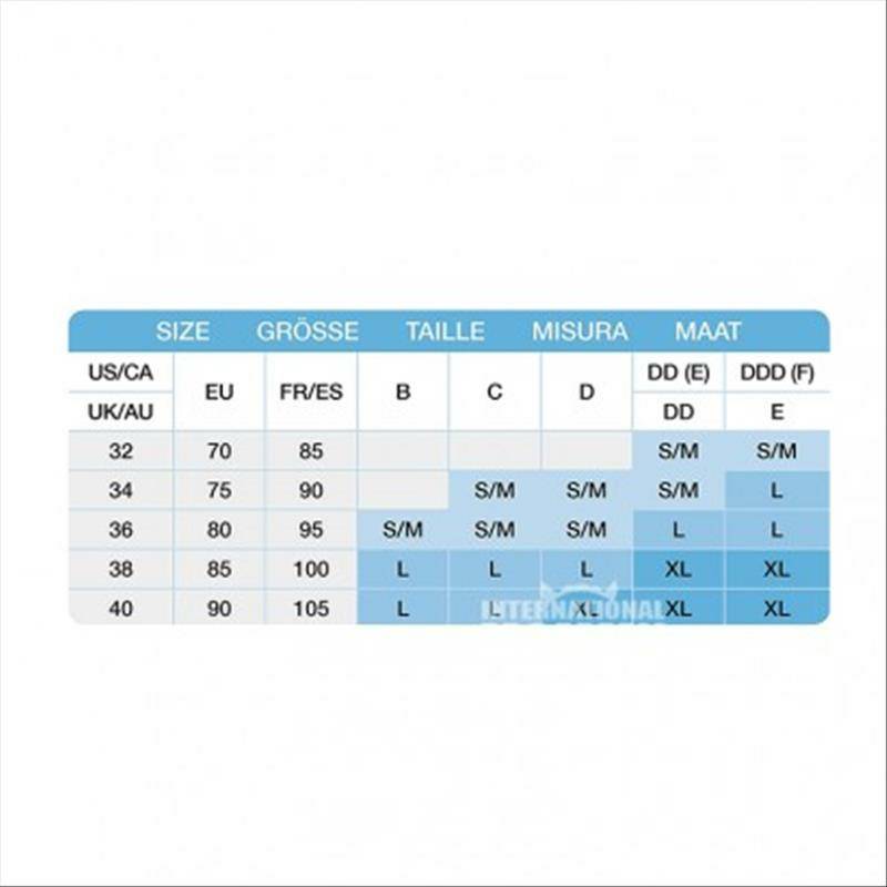 Model: 7439 Warna: hitam, putih Bahan: 74% katun, 19% poliamida 7% elastane Dengan atau tanpa cincin baja / baja: tanpa cincin baja Gaya: Bra dengan tali bahu ganda Orang yang berlaku: selama kehamilan, menyusui, setelah berhenti menyusui Unit: cm UK / AU EU / Jerman FR / ES B C D DD / E DDD / F 32 70 85 - - - S / M S / M 34 75 90 - S / M S / M S / M L 36 80 95 S / M S / M S / M L L 38 85 100 L L L XL XL 40 90 105 L L XL XL XL 42 95 110 XL XL XL XL XL Hal-hal yang perlu diperhatikan: 1. Suhu maksimum dari mesin cuci air dingin adalah 30 ℃. 2. Jangan gunakan pemutih. 3. Jangan menyeterika. 4. Pakaian dalam dianjurkan untuk dicuci dengan tangan. Tempat penjualan: Jerman Merek: Medela |