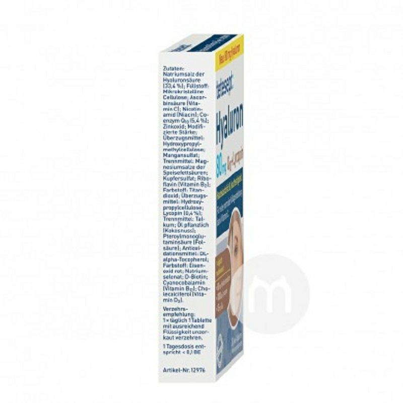 Fitur Produk 1. Tahan kerusakan radikal bebas. 2. Meningkatkan elastisitas kulit dan kulit yang kencang. 3. Asam hialuronat dosis tinggi yang ditambahkan dari dalam ke luar. 4. Selain mengandung asam hialuronat dosis tinggi, juga mengandung vitamin C, biotin dan seng dosis besar. 5. Pembentukan kolagen kulit normal, seperti kekuatan dan elastisitas kulit, berkat vitamin C, yang secara efektif dapat membantu sintesis protein kulit, serta sintesis kolagen seng. Kolagen adalah komponen utama kulit, terutama bertanggung jawab untuk penampilan kulit yang halus dan kompak, karena seng dan vitamin C melindungi kulit dari stres oksidatif, biotin dapat mempertahankan vitalitas sel yang tersembunyi. 6. Koenzim Q10 adalah zat endogen yang memainkan peran kunci dalam respirasi sel dan memiliki efek mengencangkan kulit. 7. Lycopene adalah karotenoid dan antioksidan kuat.