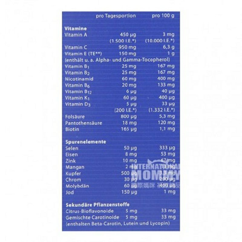 Orang yang berlaku: 1. Orang yang tidak sehat 2. Penipuan dan orang sakit 3. Orang yang rentan terhadap kelelahan dan kelelahan 4. Orang pasca operasi Spesifikasi: 15 buah / kotak Bahan utama: vitamin (vitamin A, vitamin C, vitamin E, vitamin B1, vitamin B2, vitamin B6, vitamin B12, vitamin K, vitamin D3), mineral, elemen, nikotinamid, asam lemak dan asam amino. Cara menggunakan: 1 sachet per hari, untuk diambil selama atau setelah makan Hal-hal yang perlu diperhatikan: 1. Produk ini tidak boleh melebihi jumlah yang disarankan atau dikonsumsi dengan suplemen nutrisi yang sama; 2. Jangan letakkan di tempat yang bisa dijangkau anak-anak; 3. Silakan simpan di tempat yang gelap dan kering tidak lebih tinggi dari 25 derajat Celcius; 4. Produk ini adalah suplemen makanan, bukan pengganti obat; 5. Silakan makan di bawah bimbingan dokter, wanita hamil dan anak-anak dilarang makan. Tempat penjualan: Jerman Merek: orthomol |