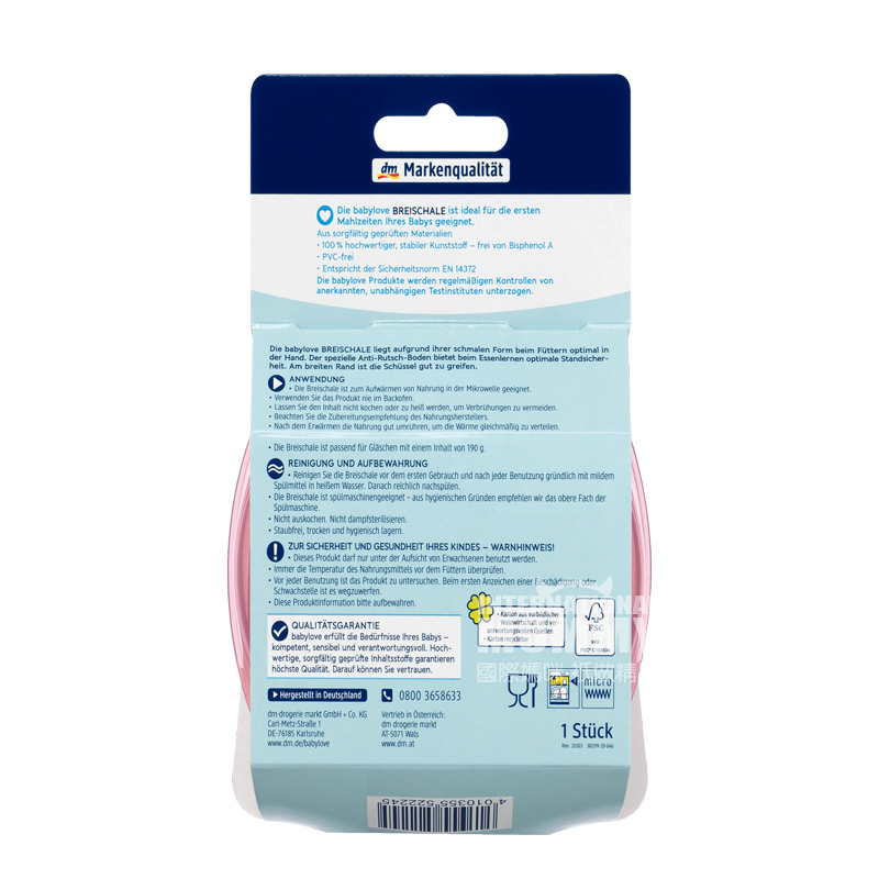 Parameter produk Orang yang berlaku: bayi di atas 4 bulan Bahan: Polypropylene PP Spesifikasi: satu bungkus Warna: Dikirim secara acak Kapasitas: sekitar 190 gram Cara menggunakan: Gunakan sesuai kebutuhan Catatan: 1. Cocok untuk memanaskan makanan dalam oven microwave, tidak cocok untuk memanaskan dalam oven. 2. Jangan memasak atau terlalu panas makanan untuk menghindari luka bakar. 3. Setelah memanaskan, aduk makanan merata untuk menyebarkan panas. 4. Sebelum penggunaan pertama, bilas mangkuk sampai bersih dengan deterjen ringan dalam air panas setelah digunakan. 5, tersedia mesin pencuci piring, kami sarankan kompartemen atas mesin pencuci piring. 6. Jangan merebus atau mensterilkan uap. 7. Gunakan hanya di bawah pengawasan orang dewasa. Integritas produk harus diperiksa sebelum setiap penggunaan. Tempat Penjualan: Jerman / Jerman Merek: babylove |