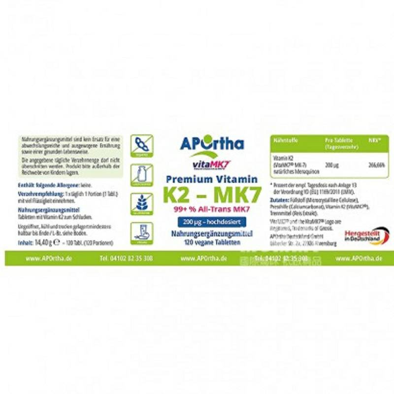 Konten bersih: 120 tablet / botol Bahan: pengisi (selulosa mikrokristalin), bantuan kompresi (kalsium karbonat), vitamin K2 (VitaMK7®), zat pelepas (ekstrak beras) Orang yang berlaku: dewasa Cara minum: Minum 1 kapsul (1 kapsul) setiap hari, telan dengan banyak air. Kiat: 1. Jangan letakkan di luar jangkauan anak-anak. 2. Silakan simpan di tempat yang gelap dan kering, simpan di bawah 25 ℃. 3. Jika Anda menggunakan obat resep, memiliki kondisi fisik, atau sedang hamil dan menyusui, silakan berkonsultasi dengan dokter Anda sebelum mengambil produk ini. Tempat penjualan: Jerman Merek: APOrtha |