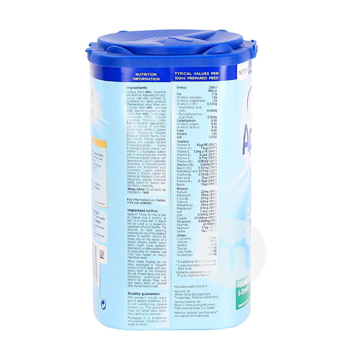 Parameter produk Usia yang berlaku:6-12 bulan Tahap: 2 langkah Konten bersih: 800g Bahan utama: kalori, lemak, karbohidrat, gula, serat makanan, protein, vitamin, asam folat, mineral Catatan: 1. Setiap kali formula diubah, Anda perlu mentransfer susu, misalnya, Anda perlu mentransfer susu dari tahap pertama ke tahap kedua, Anda perlu mentransfer susu dari formula lama ke formula baru 2. Jangan beralih ke susu satu minggu sebelum atau setelah vaksinasi; 3. Jangan mentransfer ASI ketika bayi tidak sehat; 4. Selama masa transisi, jika bayi tidak beradaptasi, perpanjang masa adaptasi sampai beradaptasi; 5. Jangan menambahkan makanan pendamping baru saat memerah susu. Tempat Penjualan: Inggris Merek: Aptamil / Love Him |