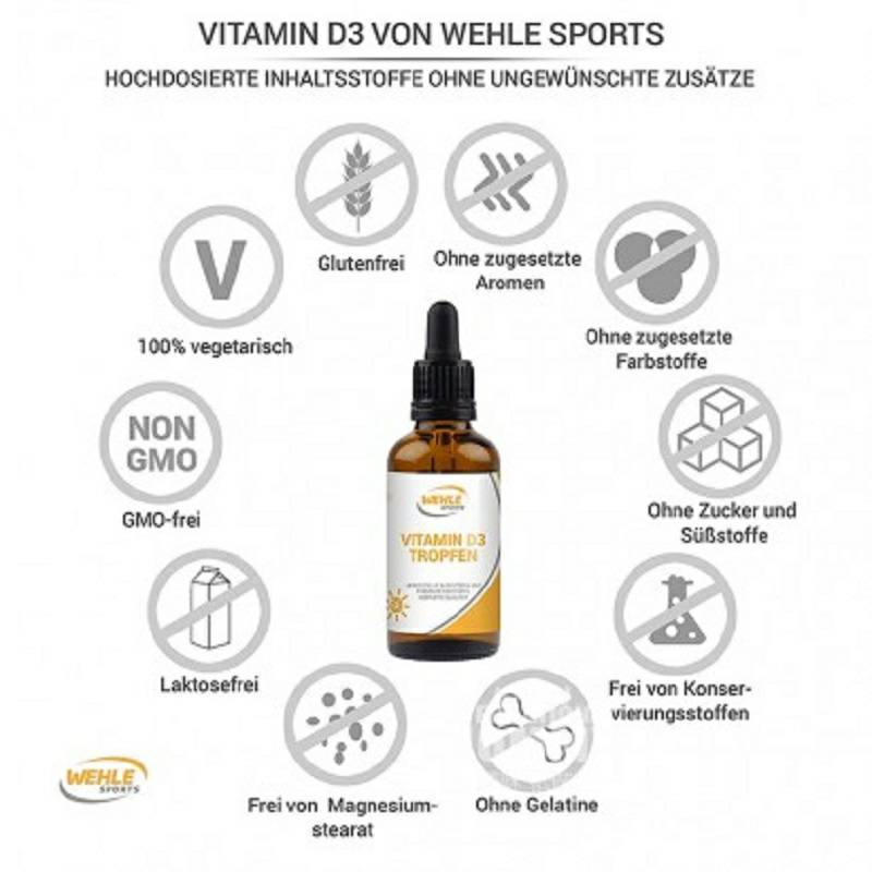 Orang yang berlaku: dewasa Spesifikasi: 50ml / botol Bahan: minyak MCT berbasis kelapa, minyak jagung (tanpa GMO), vitamin D3 cholecalciferol. Hal-hal yang perlu diperhatikan: 1. Dosis harian yang disarankan tidak boleh dilampaui. 2. Ambil cukup cairan. 3. Jauhkan produk ini dari jangkauan anak-anak. Tempat penjualan: Jerman Merek: SPORTS WEHLE |