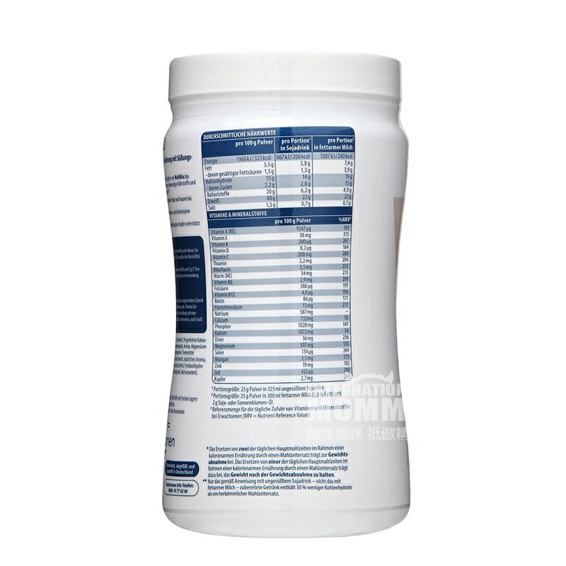 Cocok untuk orang banyak: dewasa Konten bersih: 350g Cara menggunakan: Satu porsi (setara dengan satu kali makan) tuangkan dua sendok (25 gram) bubuk ke dalam 325 ml minuman kedelai tanpa pemanis atau 300 ml susu rendah lemak. Tindakan pencegahan: 1. Produk ini tidak boleh melebihi jumlah yang disarankan atau dikonsumsi dengan suplemen nutrisi yang serupa; 2. Jangan letakkan di tempat yang bisa dijangkau anak-anak; 3. Silakan simpan di tempat yang gelap dan kering tidak lebih tinggi dari 25 derajat Celcius; Tempat penjualan: Jerman / Jerman Merek: WellMix |