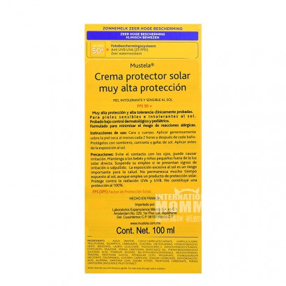 Parameter produk Untuk populasi: bayi, bayi, anak kecil, dan anak-anak yang baru lahir Bersih: 100ml Cara menggunakannya: oleskan secara merata ke kulit yang terbuka selama setengah jam sebelum keluar, dan kurangi keefektifan tabir surya. Oleskan lagi setelah berkeringat atau berenang kering, dan hindari pandangan mata, pakaian. Di bawah terik matahari luar yang berkepanjangan, kenakan baju pelindung matahari. Perhatian: Jangan taruh sembarangan. 2. Tempatkan tempat kering yang sejuk untuk disimpan. Negara asal: France Nama merek:Mustela |