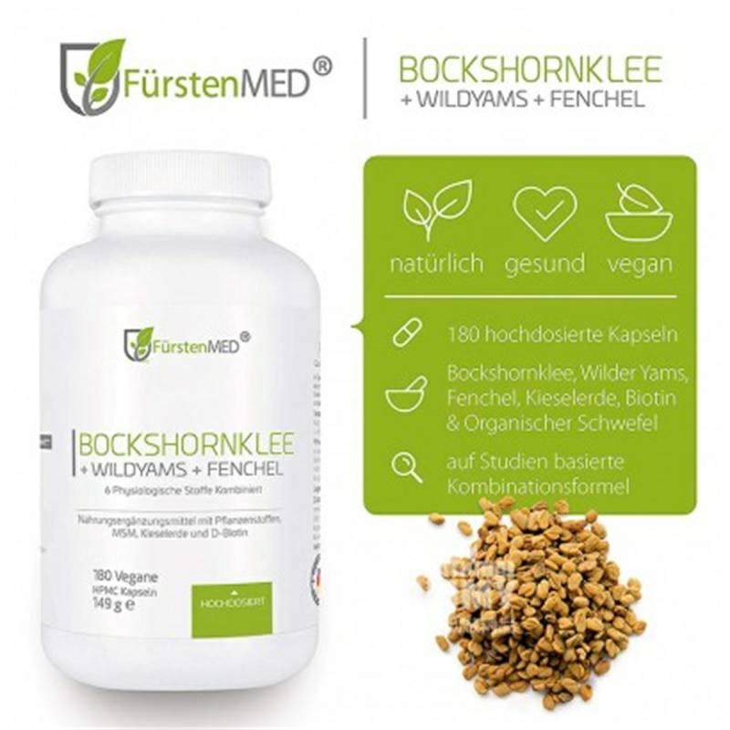 Bahan: 49,3% bubuk biji fenugreek (semen Fenugraeci disembunyikan dalam fenugreek), 22% bengkuang (bengkuang, 2% mengandung diosgenin), zat pelapis: hidroksipropil metilselulosa (HPMC, kapsul sayuran), 6% bubuk adas, 6% metilsulfonil metana (MSM), 2% bubuk silika, D-biotin. Spesifikasi: 180 tablet / botol Orang yang berlaku: dewasa Penggunaan: 3 kapsul per hari. Menelan banyak air Hal-hal yang perlu diperhatikan: 1. Jangan letakkan di tempat yang bisa dijangkau anak-anak; 2. Simpan pada suhu kamar (hingga 25 ° C); 3. Tutup botol dengan hati-hati setelah setiap penggunaan dan simpan botol yang dibuka dengan tegak; 4. Suplemen makanan tidak bisa menggantikan makanan yang bervariasi dan seimbang. Tempat penjualan: Jerman Merek: FurstenMED |