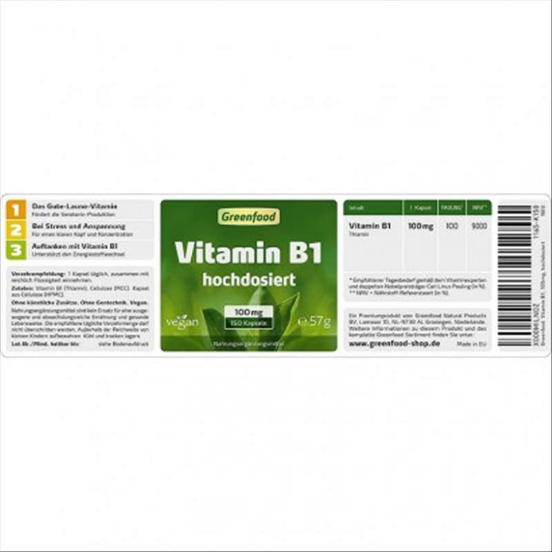 Fitur Produk 1. 1 kapsul = 100 mg vitamin B1, dosis tinggi. 2. Thiamine (vitamin B1) Ini dapat memperkuat saraf seluruh tubuh, menenangkan dan memberikan keseimbangan, dan bermanfaat bagi otak, otot dan jantung. 3. Dapat mengaktifkan zat kurir di otak, sehingga meningkatkan mood, meningkatkan memori dan konsentrasi. 4. Tiamin sangat penting untuk kelancaran transmisi sinyal antara saraf dan otot. Ini memperkuat respons sistem muskuloskeletal. 5. Terlibat dalam konversi lemak, karbohidrat dan protein menjadi energi. Orang-orang yang gelisah atau banyak mengkonsumsi gula, permen dan alkohol harus lebih memperhatikan suplementasi tiamin.