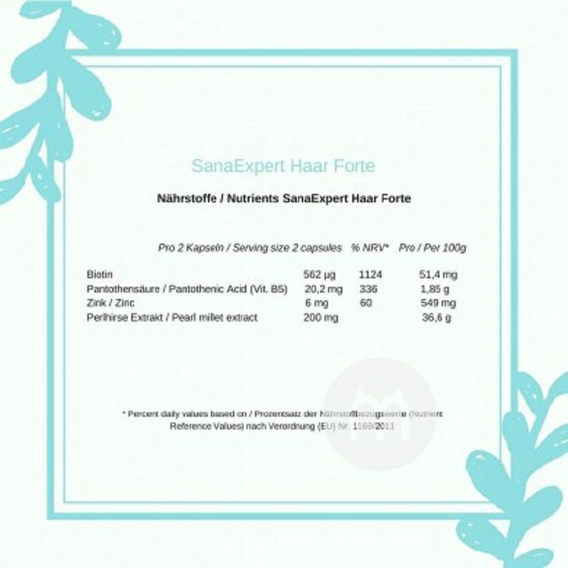 Fitur Produk 1. Mikronutrien berkualitas tinggi dan sangat penting untuk perawatan rambut dan akar. 2. Millet alami dikombinasikan dengan biotin, asam pantotenat dan seng. 3. Menjaga rambut dan kulit normal, mengandung proporsi asam silikat dan mineral yang tinggi. 4. Biotin membantu menjaga rambut normal, selaput lendir dan kulit. 5. Seng membantu menjaga rambut dan kulit normal dan melindungi sel dari stres oksidatif. 6. Asam Pantotenat berkontribusi untuk sintesis normal dan fungsi metabolisme normal, serta mengurangi kelelahan. 7. Ini tidak mengandung gluten, laktosa dan fruktosa, dan diproduksi secara khusus dan dikendalikan di Jerman.