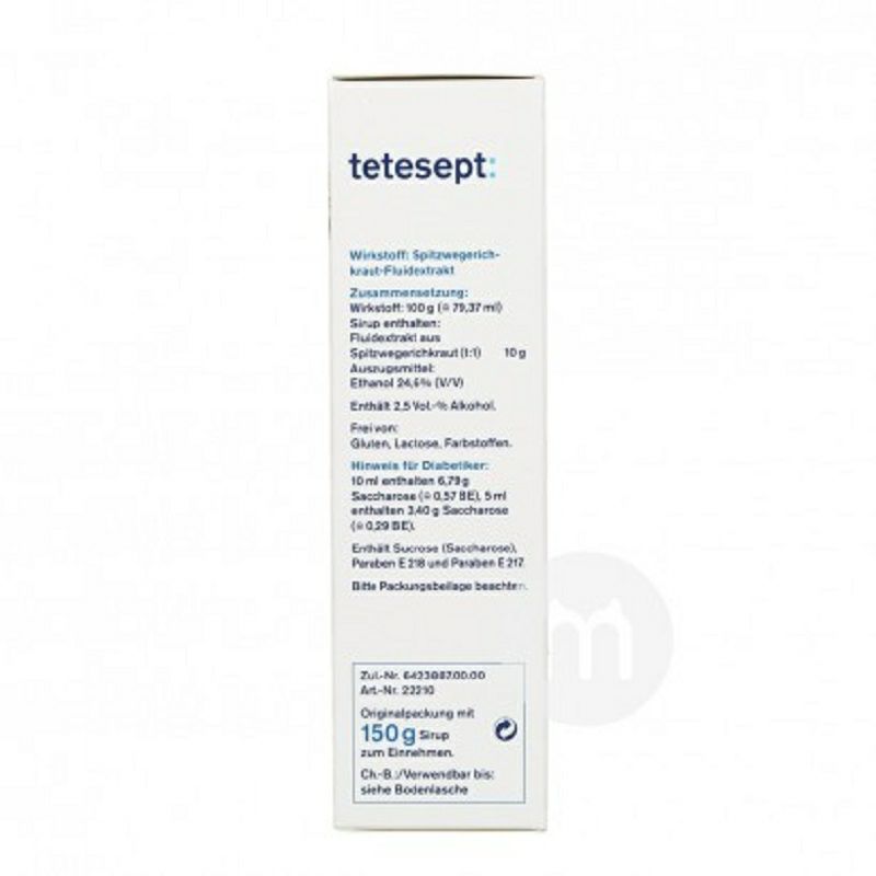 Cocok untuk orang banyak: anak-anak di atas 1 tahun dan orang dewasa Spesifikasi: 150g Bahan: ekstrak cairan herbal. Mengandung 2,5% konten alkohol. Mengandung sukrosa (sukrosa), paraben È218 dan E 217 paraben. 10ml mengandung 6,79g sukrosa, 5ml mengandung 3,40g Sachharose (= 0,29 (0,57 BE) BE) Cara menggunakan: Dewasa dan remaja (lebih dari 12 tahun): ambil 10 ml 3-4 kali sehari; Anak-anak (4-12 tahun): minum 7,5 ml 3-4 kali sehari; Balita (1-4 tahun): Ambil 5 ml 3-4 kali sehari. Hal-hal yang perlu diperhatikan: 1. Untuk risiko dan efek samping, silakan baca sisipan paket dan konsultasikan dengan dokter atau apoteker Anda 2. Berlaku dalam waktu 6 bulan setelah pembukaan; 3. Silakan simpan di tempat yang gelap dan kering, simpan di bawah 25 ℃; 4. Harap letakkan di luar jangkauan anak-anak. Tempat penjualan: Jerman Merek: tetesept |