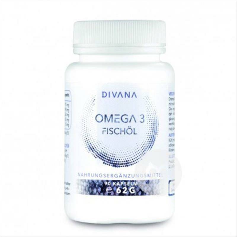 Bahan: Minyak ikan (72,7%), zat pelapis (Jepang): gelatin (17,3%), bahan pembasah: gliserin (6,9%), air (2%), d, L-alpha tocopheryl acetate (61% vitamin) E) (1,2%). Konten bersih: 62g Spesifikasi: 90 kapsul Penggunaan dan Dosis: Ambil tiga kapsul per hari, cukup cairan, jangan dikunyah. Hal-hal yang perlu diperhatikan: 1. Dosis harian yang disarankan tidak boleh melebihi 2. Ambil cukup cairan 3. Letakkan produk ini di luar jangkauan anak-anak Tempat penjualan: Austria Merek: DIVANA |