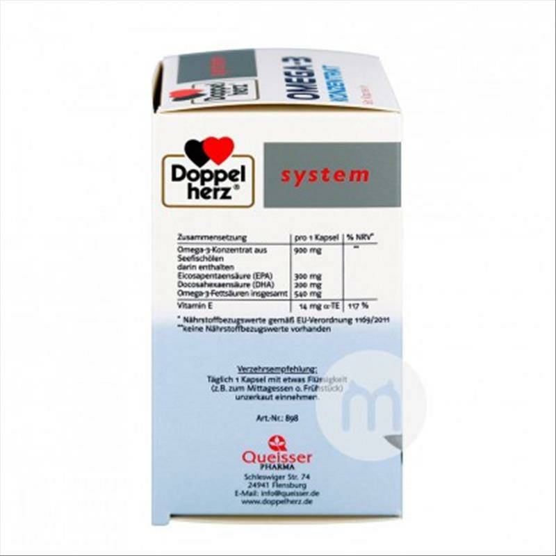 Bahan: konsentrat minyak ikan asam lemak omega-3 mengandung asam, 68,1% gelatin (sapi), humektan, gliserin, d-α-tokoferol. Orang yang berlaku: dewasa Spesifikasi: 60 kapsul / kotak Cara menggunakan: Minum satu kapsul setiap hari dengan air. Hal-hal yang perlu diperhatikan: 1. Produk ini tidak boleh melebihi jumlah yang disarankan atau dikonsumsi dengan suplemen nutrisi serupa; 2. Jangan letakkan di tempat yang bisa dijangkau anak-anak; 3. Harap simpan di tempat yang gelap dan kering tidak lebih tinggi dari 25 derajat Celcius; 4. Produk ini adalah suplemen makanan, produk ini tidak dapat menggantikan obat. Tempat penjualan: Jerman Merek: Doppel herz |