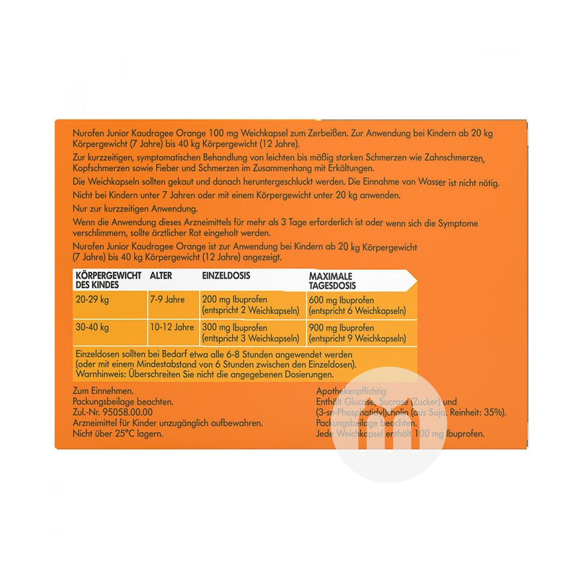 Parameter produk Bahan: gelatin; Air, pembersihan; Larutan glukosa; Setara dengan glukosa 38,3 mg; Saccharose251.6 mg; Kuda yang kaya asam; Sucrasukrosa; Asam sitrat, tanpa air; Kalium cetafonate; Ethylmine iv. Nitrogliserin; Bau XiangCheng; Oksida besi; Oksida besi hidrat, hitam; Minyak tercetak tercetak; Gliserida gliserol, perantara, Lesitin (kedelai) 0,01 mg; YingZhi asam Peluru 24 Untuk orang banyak: 7 tahun diatas 20kg bayi Metode penggunaan: Anak-anak berusia 7-9 tahun (dengan berat badan 20-29 kilogram) setiap kali 2 kapsul lunak, 1-3 kali sehari, interval waktu 6-8 jam 10-12 tahun (berat badan 30 sampai 40 kilogram) tiga kapsul lunak setiap waktu, 1-3 kali sehari, selang waktu 6-8 jam Perhatian: 1, fungsi hati dan ginjal tidak lengkap, hati gagal. 2, perut, atau jangan gunakan sariawan usus, atau berdarah yang aman bagi anak. 3, jangan sembarang memakai obat. 4, penderita alergi parah terhadap aspirin atau obat anti-inflamasi non-steroidal lainnya dinonaktifkan. 5. Baca instruksi pada paket produk anda dengan saksama sebelum menggunakannya. Six, tolong jangan taruh obat di tempat yang bisa diakses anak-anak. Negara asal: Germany/jerman Nama merek:NUROFEN