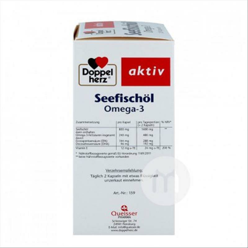 Bahan: Bahan aktif: 800 mg minyak dari ikan laut, termasuk 240 mg asam lemak omega-3, termasuk: 144 mg asam eikosapentaenoat, 96 mg asam docosahexaenoic, 12 mg [R, R, R ] -a-tokoferol setara (vitamin E), sebagai komponen lain: gelatin, gliserin. Orang yang berlaku: dewasa Spesifikasi: 120 kapsul / kotak Cara menggunakan: Ambil 2 kapsul setiap hari dengan air hangat. Hal-hal yang perlu diperhatikan: 1. Produk ini tidak boleh melebihi jumlah yang disarankan atau dikonsumsi dengan suplemen nutrisi serupa; 2. Jangan letakkan di tempat yang bisa dijangkau anak-anak; 3. Harap simpan di tempat yang gelap dan kering tidak lebih tinggi dari 25 derajat Celcius; 4. Produk ini adalah suplemen makanan, produk ini tidak dapat menggantikan obat; 5. Jika Anda diketahui alergi terhadap salah satu bahan di atas, Anda tidak boleh menggunakan produk ini; 6. Tidak cocok untuk anak di bawah 12 tahun. Kapsul tidak cocok untuk orang yang kesulitan menelan. Tempat penjualan: Jerman Merek: Doppel herz |
