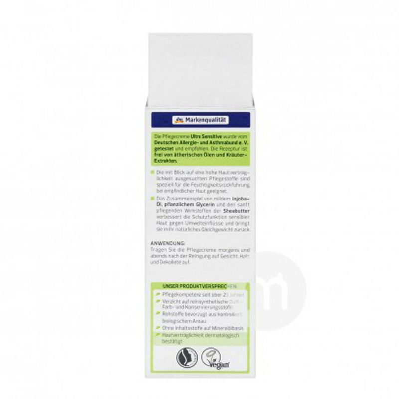 Orang yang berlaku: kulit sensitif Konten bersih: 50ml Cara menggunakan: Setelah membersihkan di pagi dan sore hari, oleskan krim ke wajah, leher dan bahu. Hal-hal yang perlu diperhatikan: 1. Jangan letakkan di tempat yang bisa dijangkau anak-anak. 2. Untuk menghindari alergi, silakan lakukan tes sensitivitas di belakang telinga. 3. Simpan di tempat yang sejuk dan kering. Tempat penjualan: Jerman Merek: alverde |