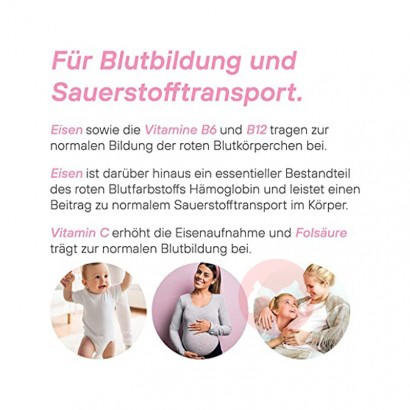 Features Fitur 1. Kaya akan semua nutrisi penting untuk ibu hamil dan ibu menyusui. 2. Digunakan untuk pembentukan darah dan transportasi oksigen dalam tubuh. 3. Digunakan bersama dengan asam folat untuk pembelahan sel dan pertumbuhan jaringan ibu. 4. Mengandung vitamin B dan vitamin C, yang dapat memberikan lebih banyak energi.