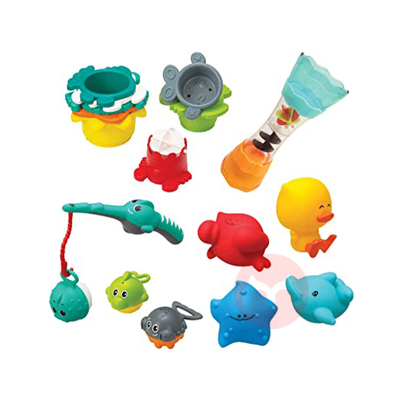 Fitur Produk 1. Set mainan bayi terdiri dari 17 bagian yang menarik, seperti set mainan pancing, cangkir susun, cipratan air mandi, dan tirai air yang mengusung konsep gravitasi. 2. Dapat mempromosikan pengembangan koordinasi tangan-mata dan keterampilan motorik besar.3. Cangkir yang dapat ditumpuk membuat belajar angka 1-8 menjadi menyenangkan.