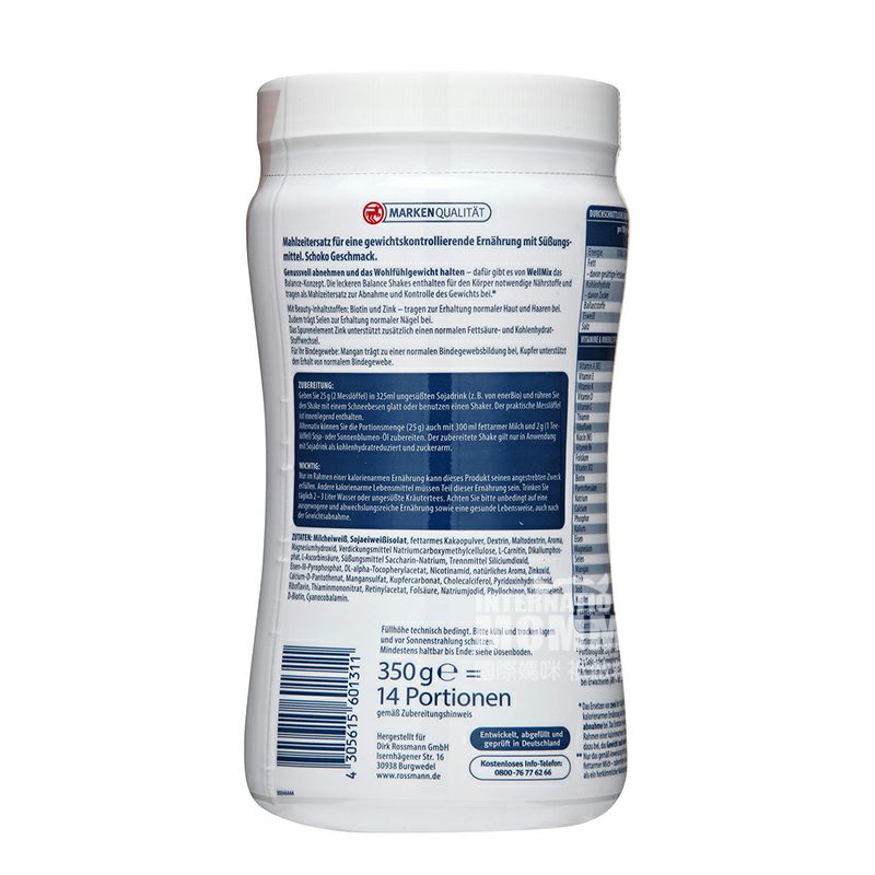 製品パラメータ ヒトに適した:成人 純含有量: 350 g 方法m−h 1部(1食相当)を用いて、2スプーン(25グラム)の粉末を325ミリリットルの砂糖を添加しない大豆飲料または300ミリリットルの低脂肪牛乳に入れた。 注意事項: 1.本品は推奨量を超えたり、同類の栄養補給剤と同時に食べたりしてはいけない。 2.子供が触れるところに置かないでください。 3.光を避け、乾燥し、25度以下の場所に保管してください。 販売地:Germany/ドイツ ブランド:WellMix |