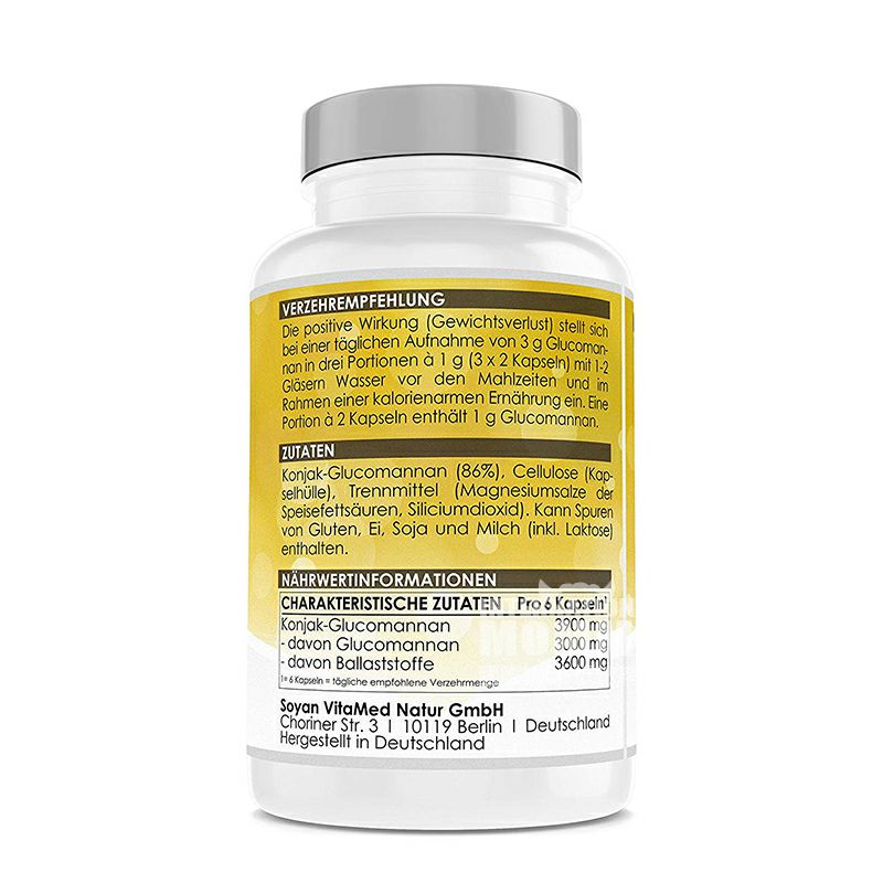 製品パラメータ 成分:こんにゃくグルカン(86%)、セルロース(カプセルシェル)、離型剤(脂肪酸マグネシウム塩、シリカ)。 ヒトに適した:成人 純含有量: 120粒/瓶 用法用量:食事前に毎日3回摂取する×2粒 注意事項: 1.本品は推奨量を超えたり、同類の栄養補給剤と同時に食べたりしてはいけない。 2.子供が触れるところに置かないでください。 3.光を避け、乾燥し、25度以下の場所に保管してください。 4.本品は食事栄養補給剤である。本品は薬の代わりにならない。 販売地:Germany/ドイツ ブランド:LINEAVI |