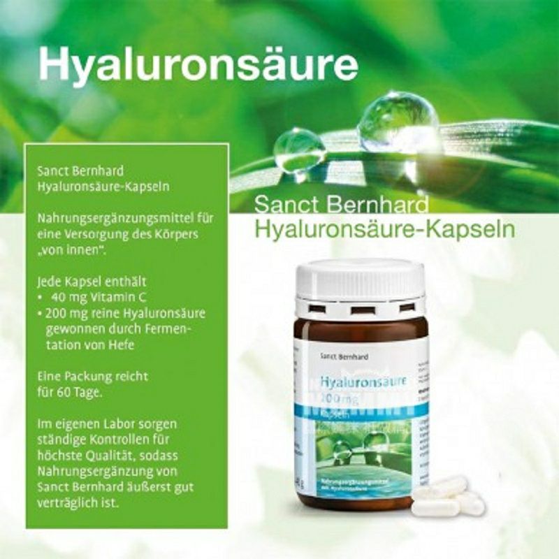 製品パラメータ 成分:ヒアルロン酸(56%)、ゼラチン、ビタミンC、微結晶セルロース充填剤、ステアリン酸マグネシウム離型剤。各ヒアルロン酸カプセルはビタミンC 40 mgと純ヒアルロン酸200 mgを含み、酵母エキス発酵により得られる。 適用者:成人 規格: 120粒 使用方法m−hは1日2回、毎回1粒である。 注意事項: 1、栄養品はバランスのとれた食事や健康的な生活様式に取って代わることができない。 2、保管時に直射日光を避ける。 3、本製品は病気の診断、診療或いは予防に使用しない。 販売地:Germany ブランド:Sanct Bernhard |