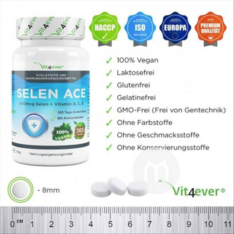 製品パラメータ 成分:セレン酸ナトリウム、酢酸ビオキシド、酢酸トコフェロール、アスコルビン酸、助濾剤と分離剤:微結晶セルロース、脂肪酸マグネシウム塩、シリカ。 適用者:成人 規格: 365枚/瓶 使用方法:は毎日1錠服用し、大量の水を飲み込むことをお勧めします。 注意事項: 1、子供の手の届かないところに置かないでください。 2、避光、乾燥所に保管し、25℃以下で保存してください。 3、もし処方薬を服用している場合、体に何か状況がある場合、または妊娠と授乳期にある場合は、本品を服用する前に医者に相談してください。 販売地:Germany ブランド:Vit 4 ever |