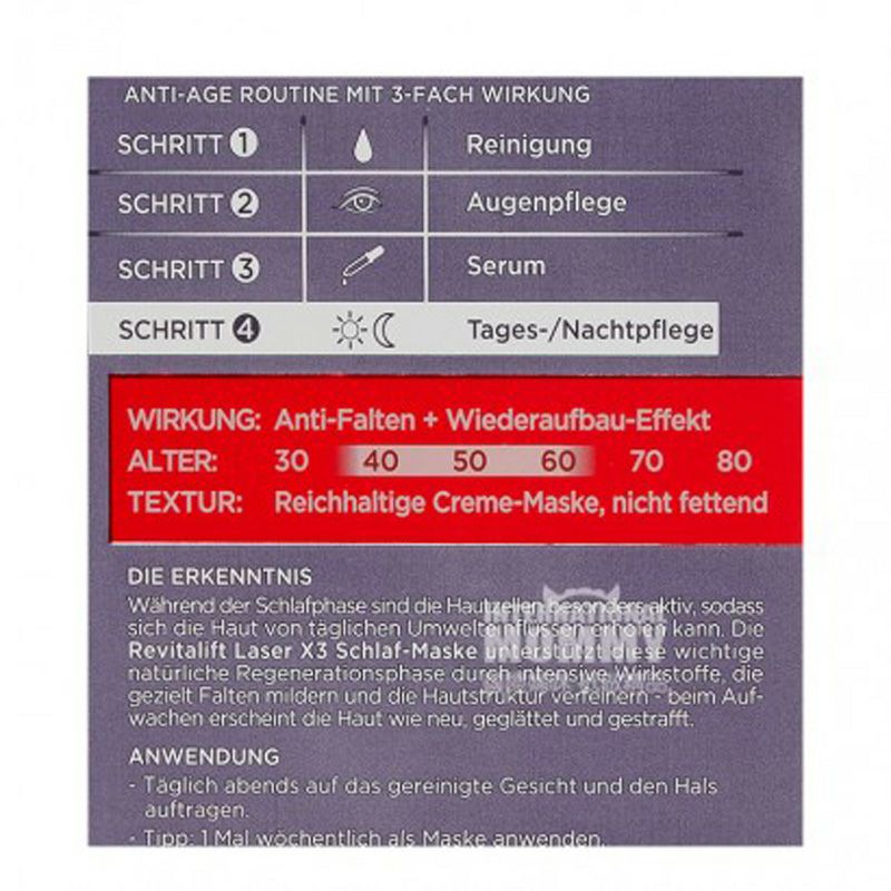 製品パラメータ 適用者:は35歳-59歳に適している。 使用方法:を晩霜:として毎日基礎的に肌をさっぱりケアした後、顔と首を軽く揉んで吸収するまでマッサージする。 マスク:として週に1回塗布します。 注意事項: 1、子供が触れる場所に置かないでください。 2、避光、乾燥所に保管してください。 3、製品が不注意で目に入ったら、すぐに大量の水できれいに洗ってください。 販売地: France ブランド:L`OREAL Paris |